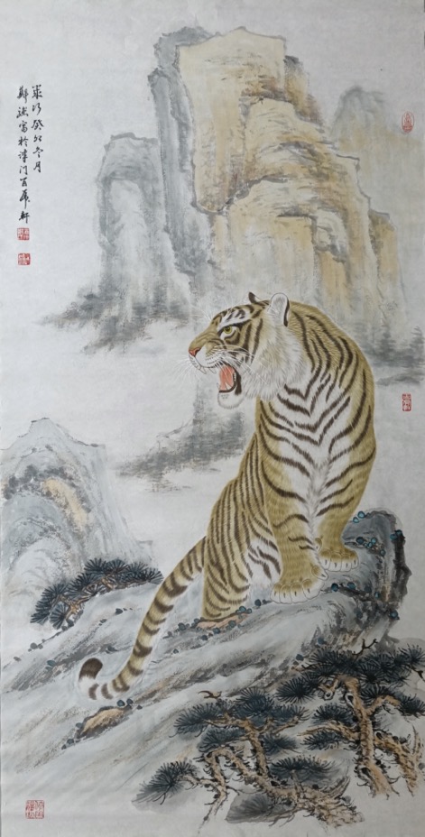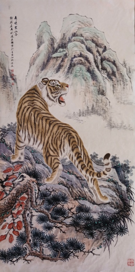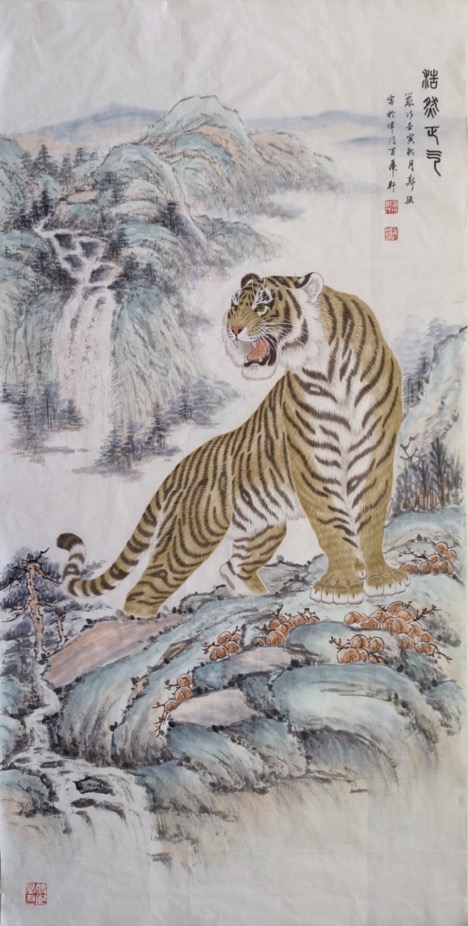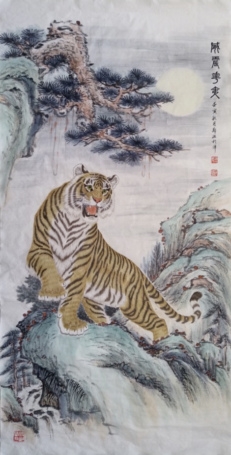 郑强 ,字行健,专工画虎。国家一级美术师,北京湖社画会会员,中国书画家协会理事,中国扇子艺术学会会员等,作品曾于中国国家画院国展中心、中华世纪坛等地展出,并被中央党校、中纪委等国家机关及各界贤达收藏。出版书籍报刊台历挂历多种。南京晨报曾两度专版推介。天津电视台、腾讯视频等官媒都曾采访报道画虎事迹。作品及个人肖像曾在天津滨江道商业街大屏幕滚动播出展示。壬寅虎年应邀为北京饭店创作生肖珍藏酒酒标《教子图》。多幅作品被创维华为小米等电子厂家用做电视及手机屏保。