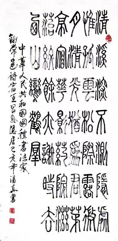 汤真,斋名:硕源斋。1938年生,武汉黄陂解放村人,1961年毕业于鲁大。文旅部国家一级书法师、湖北美术学院书法系客座教授,一代书圣、书坛巨擘、中国艺术大家、一代巨匠、人民功勋艺术家、书法评论家、兼长诗文、版画、收藏家、文艺活动家、湖北汤真书画院院长、文旅部中国文联神州杂志社艺术顾问、外交部世界知识画报艺术顾问、文旅部中国文化信息协会艺术顾问、中华人民共和国国礼书法家、中华人民共和国人民艺术家、中华人民共和国国宝级艺术大师、中华人民共和国国礼艺术大师、国礼中外文化交流大使、国礼中华文化大使、中华儿女中国影响力美术总监、CCTV瞭望天下栏目监制(总部专家)。原黄河小浪底对外工程局副局长、高级工程师。