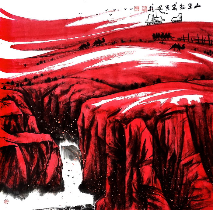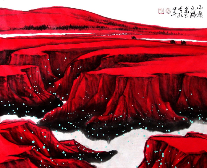2021年6月28日,庆祝中国共产党成立100周年美术、书法、摄影展中,中国画作品《吉祥中国红》在兴安盟乌兰牧旗宫展览。