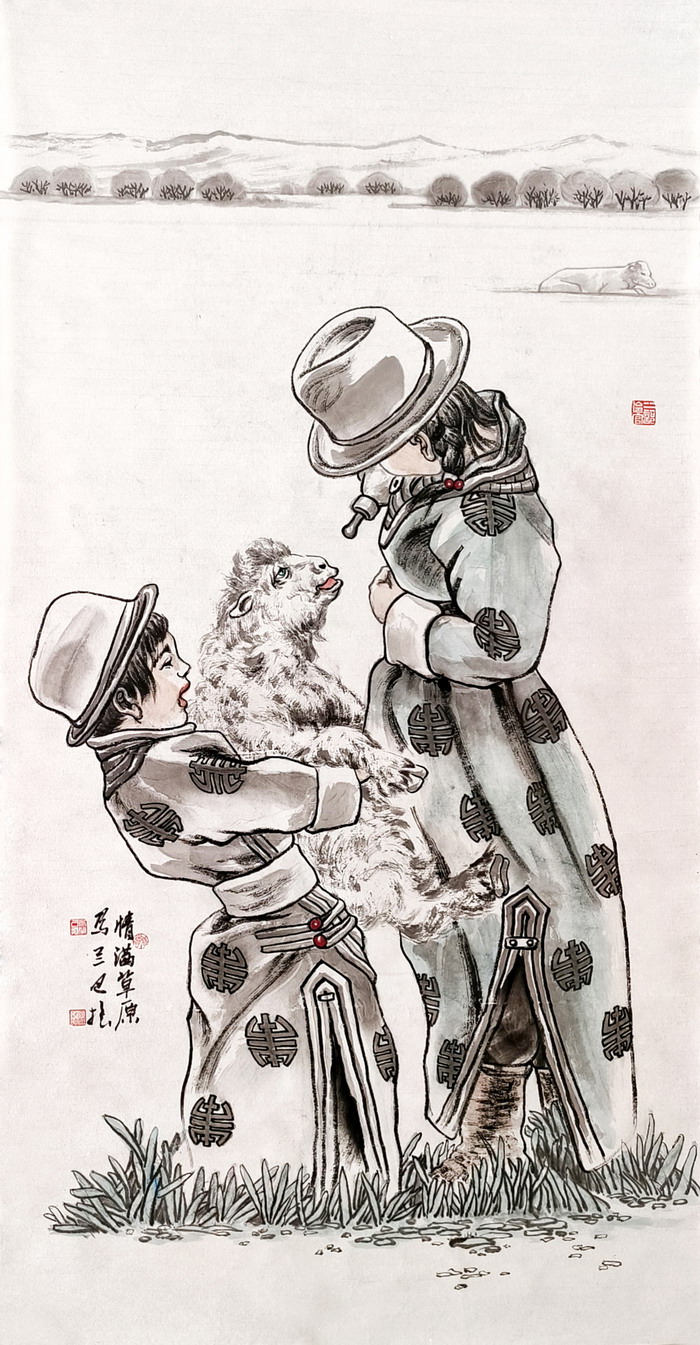 2022年7月23日,《石榴籽同心筑梦》艺术作品专题展中,中国画作品《吉祥草原》在科右中旗美术馆展出。