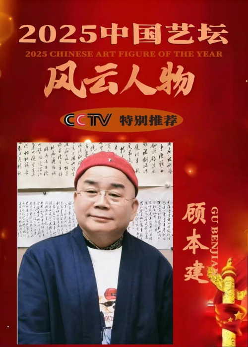 2015 年受陈云纪念馆邀请为纪念陈云同志诞辰 110周年诗词楹联获奖作品全文书写顾本建书法行笔刚健潇酒,笔法精湛,疾中有滞,或飘逸或凝练,一派古朴典雅的盛唐气象。行书如行云流水,韵味纯厚,自成一体,楷书端庄秀雅,功力颇厚。且布局于参中求自然,于错落中求流贯,大大增添了小楷章法的情趣。2021年初顾本建为庆祝中国共产党百年华诞,用鲜艳赤红的老朱砂,倾情手写《中国共产党章程》全文小楷长卷(作品长达 19 米,宽仅 03米,总字数近 1.9 万字)。他以普通民革党员身份,本着一位书画家的初心,向中国共产党百年华诞敬上这份厚礼。该作品第一时间就被《中国共产党第一次全国代表大会纪念馆》永久收藏。顾本建亦擅长山水和花卉,作品受到海内外收藏家的追捧。而今,顾本建挥酒自如的书法技艺日臻成熟。他先后被评为上海“百名市民书法家“中日文化交流特使”“沪浙地区最受藏界欢迎的年度艺术家”“当代杰出艺术家”“中国传统文化最高成就奖”等奖项。就在香港的一次拍卖会上,他的一套福禄寿作品被拍到了 60万港元的高价,成了业界中的佼佼者。热衷于公益活动,把几十年的经历投身在中国传统文化的传承和发扬光大上,是一位品正才厚的书法家!