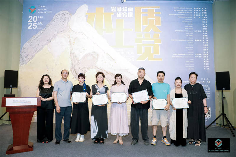 2025年7月26日下午15:30,“本土 质觉——岩彩绘画研究展”在北京保税艺术区B3楼盛大开幕。本次展览展出了19位岩彩艺术家的当代形态的岩彩作品,以及岩彩绘画课程体系的教学成果。展览由李可染画院艺术研修中心和北京首文科文创置业有限公司联合主办。
