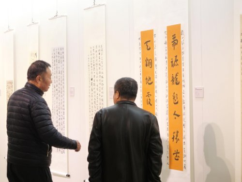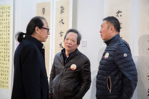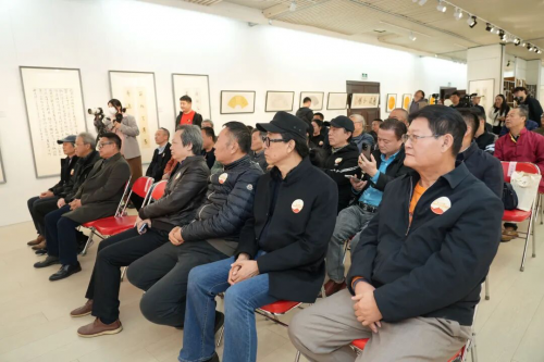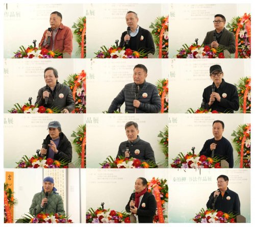 开幕式现场,中共中央宣传部原秘书长官景辉、最高人民法院办公厅原副主任于新年,中国书法家协会理事梁永琳、张世刚、刘楣洪、张公者、孙佩杰,《中国故事》杂志社社长魏驾雾、北京介居书院美术馆馆长张智重,以及吕书庆、温广为、曹新元、崔世广、赵青仲、宋伯军、刘西园、张良、周明华、王晖、丁剑等艺术界名家出席,电视连续剧《书圣王羲之》卫夫人扮演者唐妤萌担任主持。