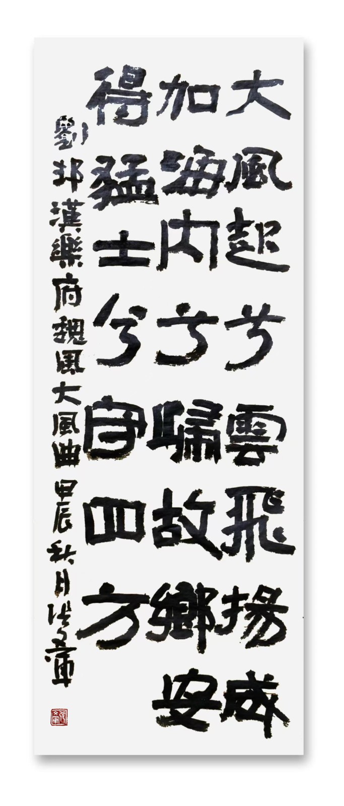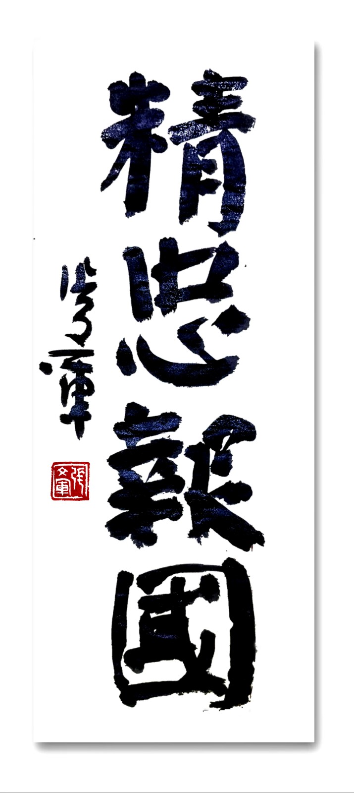 粤稽书道,肇自仓颉,经秦篆汉隶,至唐而楷法大备。颜鲁公真卿,以雄强之笔,开一代新风,其《麻姑》《家庙》诸碑,如泰山北斗,为后世法。 冀中张文军者,幼耽翰墨,尤嗜颜体。以《麻姑山仙坛记》为根,融《颜家庙碑》之雄强、《李玄靖碑》之圆浑、《宋璟碑》之刚正,三十载耕耘不辍,终成自家面目。文军作书,以中锋为宗,得篆籀之气。其起笔藏锋,如锥画沙,收笔回锋,若印印泥。点画之间,多有隶意,蚕头燕尾,隐然可见。观其横画,如千里阵云,隐隐然有奔雷之象;察其竖笔,若万岁枯藤,苍苍然含古木之姿。昔鲁公作《麻姑》,笔法如屋漏痕,迟涩厚重。文军深得此旨,每作一字,必凝神静气,以腕运笔,使力透纸背。其书线条,或刚或柔,或疾或徐,变化无端,而法度谨严。结体宽博,有颜体之气象。其字多外拓,如大鹏展翅,欲飞未飞。虽取法鲁公,然不拘成法,每能于平正中见奇崛。如“国”字,外框开阔,内中饱满,如城池之固;“中”字,中竖挺拔,左右舒展,如栋梁之坚。其结体,或大或小,或欹或正,错落有致,而气脉贯通。此所谓“从心所欲不逾矩”者也。章法疏朗,有林下之风。其字间距、行距,皆能错落有致,疏密得当。观其整幅作品,如空山新雨,清气袭人;似明月松间,意境悠远。其墨色,或浓或淡,或干或湿,变化自然。浓墨处如乌云翻墨,淡墨时似薄雾笼山。浓淡干湿之间,自有一番情趣。此非胸有丘壑者,不能为之。文军之书,既得颜体之精髓,又有自家之面目。其书古拙朴茂,刚健雄强,如燕赵之士,慷慨悲歌。观其书,如见其人,其为人也,刚正不阿,有古君子之风。尝曰:“书道无止境,吾将上下而求索。”其笃学如此,不亦宜乎?