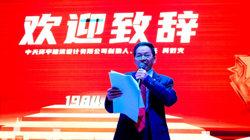 此次活动在观看完中天环宇四十周年成果展企业宣传片后正式拉开序幕。活动由中天环宇建筑设计有限公司创始人、公司董事长:肖衍火先生为本次活动致欢迎辞,并对出席活动的领导行业专家以及各商界企业家们表示诚挚的欢迎。肖衍火董事长介绍到;中天环宇建筑设计有限公司在历史的长河中,公司从 1984 年中房 (集团) 贵阳公司设计室的萌芽起步,历经多次改制与发展,如今中天环宇已遍布贵州、四川、广州、安徽、新疆等多个省市,公司资质等级达到甲级标准,旗下拥有40余家分公司,成为了行业内具有一定规模和影响力之一的建筑工程设计单位。