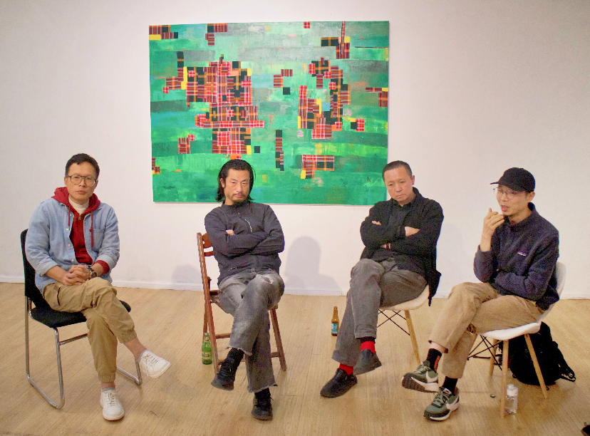 右起 策展人、艺术评论家、艺术家罗菲 / 艺术家、策展人 和丽斌 / 艺术家 薛韬 / 艺术家尹小龙
